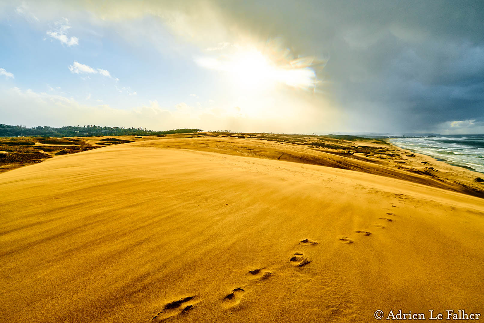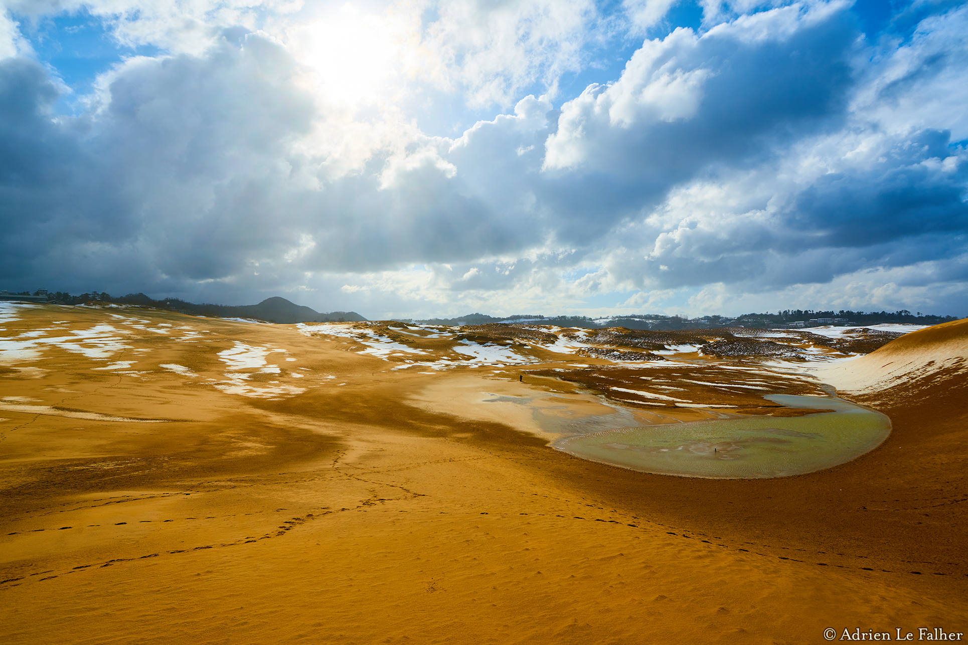 Mais le paysage était bien là : cette juxtaposition des éléments improbable, ces dunes bicolores, et toujours ce ciel, à moitié nuageux, qui éclairait le tout d’une lumière magnifique. Je laisse mes derniers mots à une image.