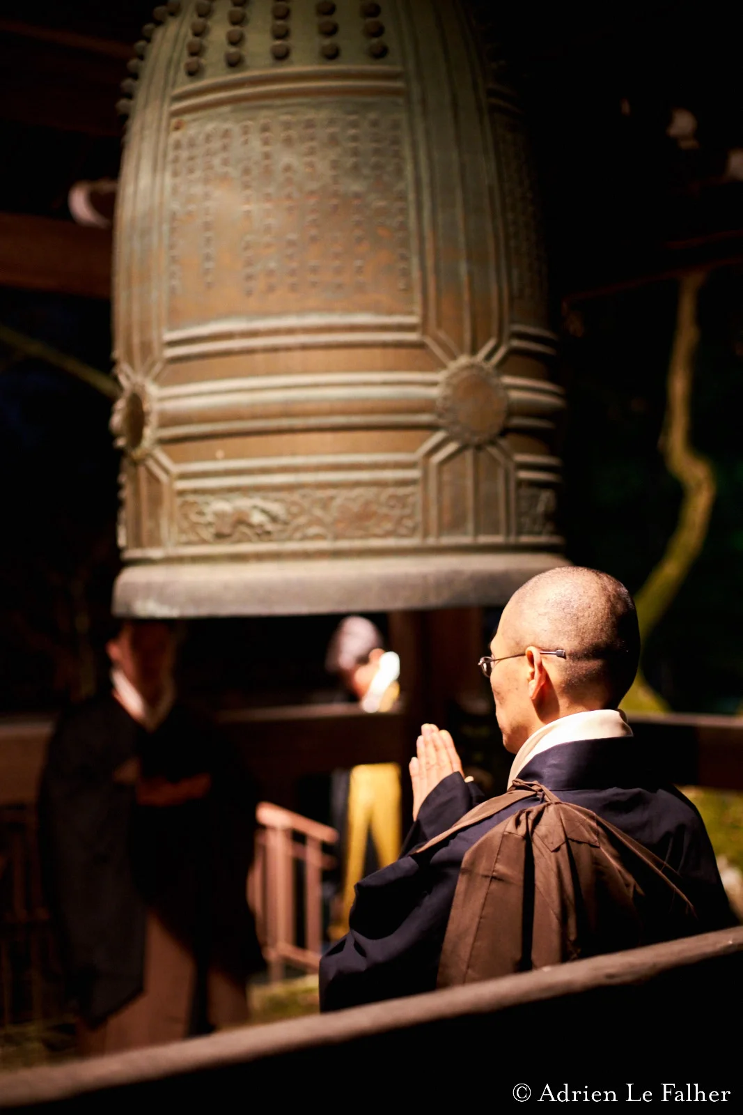 Si Noël est la fête des amoureux (et de KFC), le nouvel an, Ōmisoka, se passe en famille. Accompagnés de notre famille d’un soir, rencontré à l’auberge pendant le dîner (une sorte de soupe avec un mochi au fond, cette boulle de pate de riz), nous nous sommes rendu dans un temple, pour sonner une grande cloche.